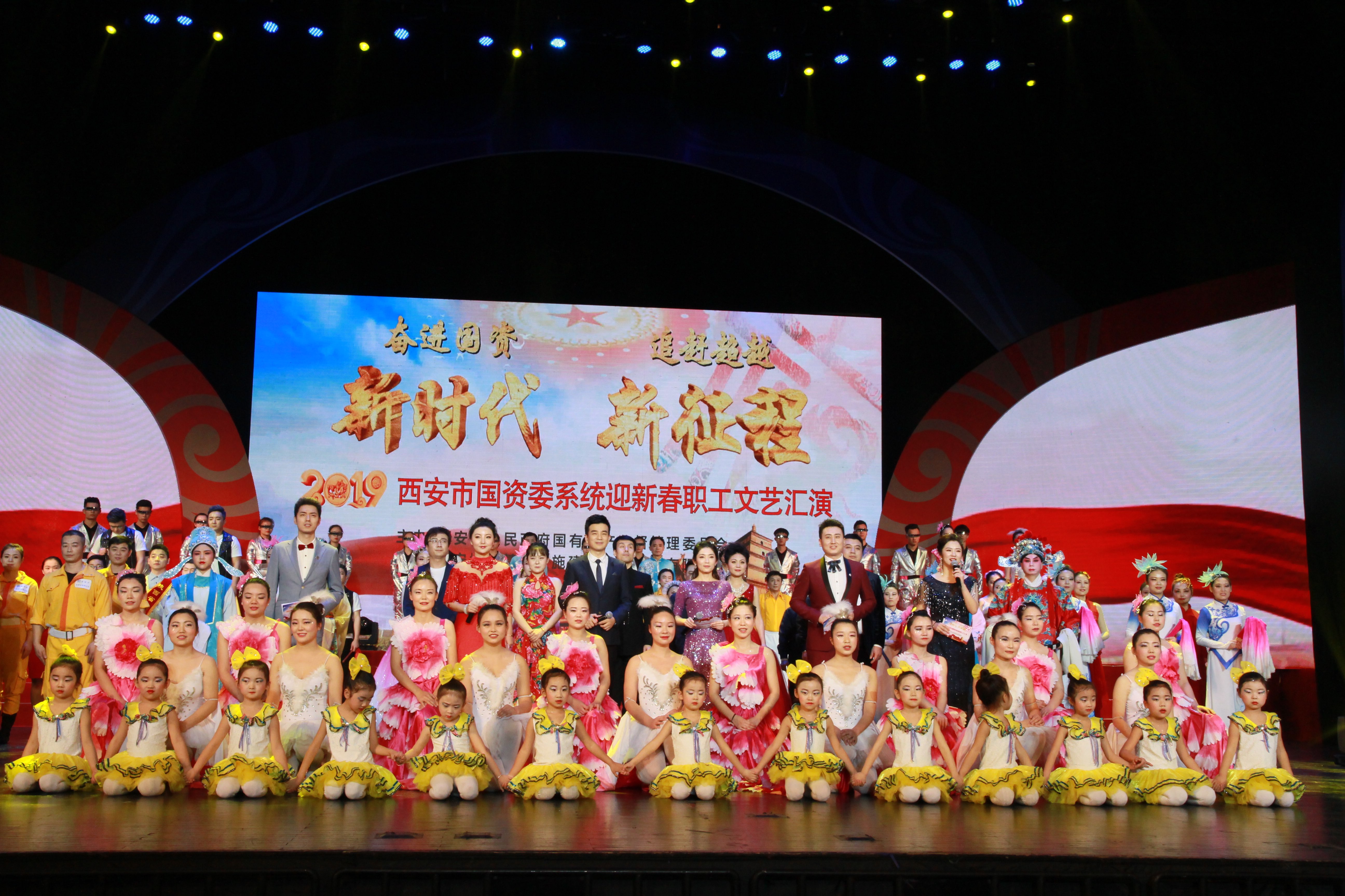 ? ? 瑞犬辭舊歲,金豬迎新春。2019年1月28日下午,西安市國資委系統(tǒng)以“奮進國資新時代 追趕超越新征程”為主題的2019年迎新春職工文藝匯演在曲江國際會議中心三樓大禮堂隆重舉行。來自西安市國資委系統(tǒng)內(nèi)35戶企業(yè)的650名演員為大家奉上了一場精彩絕倫的文藝盛宴。市國資委系統(tǒng)的近2000名干部職工觀看了演出。文藝匯演并舉行了頒獎活動。