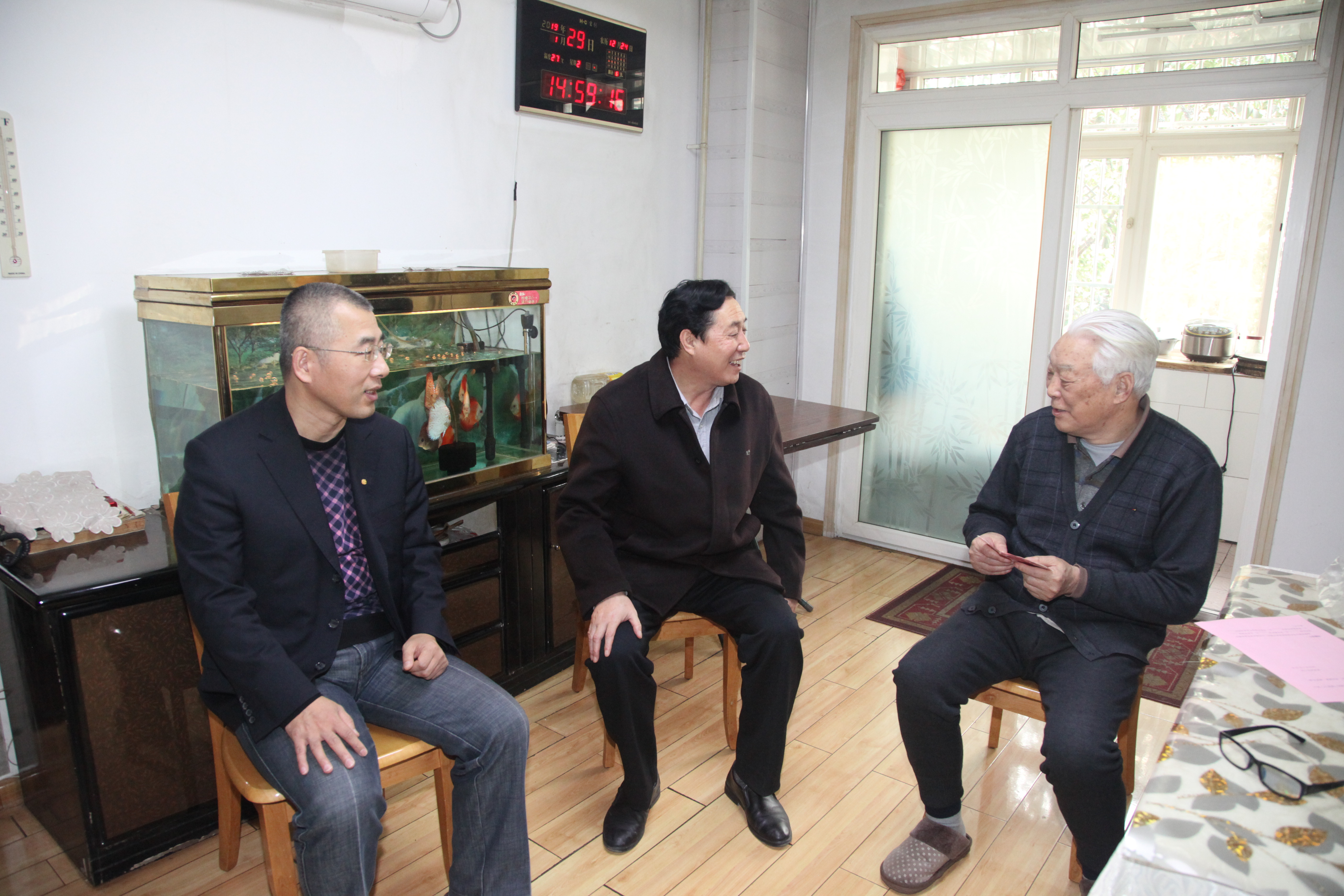 ? ? 在2019年春節來臨之際,?1月29日,公司黨委書記、執行董事、總經理王新坪,工會主席趙養科看望慰問了全國“五一勞動獎章”獲得者趙希普、陜西省勞動模范李新勝,西安市勞動模范劉建利和陳小龍同志,宣讀了省總工會、市總工會致勞動模范的慰問信,轉達了組織對勞模及家人親切的問候和美好的祝愿,并送上了慰問金。隨后又看望慰問了離休老干部劉海明、許俊賢等,為他們送去了慰問金和慰問品,送去了組織的關懷。黨群工作部、離退休管理中心負責人和工會相關人員陪同慰問。