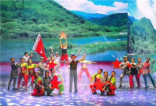 ? ? ?‘’紅星閃閃亮,照去戰(zhàn)斗,革命代代如潮涌,前赴后繼跟黨走 ‘’, 情景歌舞《紅星照我去戰(zhàn)斗》表現(xiàn)了物化探人團(tuán)結(jié)奮進(jìn),永遠(yuǎn)跟黨走,在新時(shí)代轉(zhuǎn)型發(fā)展的新長征路上,不辱使命、勇于擔(dān)當(dāng)、砥礪奮進(jìn)的精神風(fēng)貌。在美輪美奐的燈光和優(yōu)美旋律的襯托下,演員激情的演唱、豐富的情景舞蹈,贏得了在場觀眾陣陣熱烈掌聲。