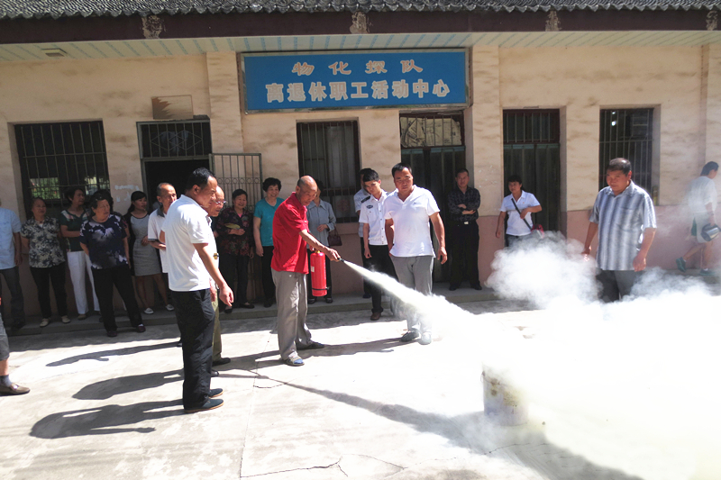 ? ? 在安全知識專題講座中,大家專心聽講,并不斷提問,科教站教官對每個職工家屬提出的問題都進行了耐心的解答。講座結束后,科教站教官又在室外對滅火器的構造、原理及使用進行了詳細的講解,并現場指導職工、家屬正確使用滅火器、消防水帶進行現場滅火演練。