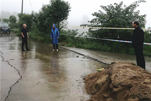 ??? 按照陜西省突發(fā)地質(zhì)災(zāi)害應(yīng)急排查突擊總隊(duì)指示要求,本著“為政府分憂,為社會服務(wù)”的宗旨,8月20-21日,由主持公司黨政工作的黨委副書記、紀(jì)委書記李新勝帶隊(duì),前往寶雞市眉縣楊家村冒雨開展了地質(zhì)災(zāi)害應(yīng)急排查工作。公司副總經(jīng)理龐日軒、地災(zāi)監(jiān)測中心技術(shù)骨干及相關(guān)部門技術(shù)人員共11人參與應(yīng)急工作。