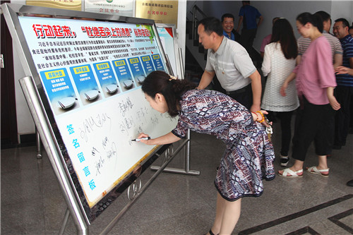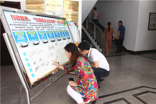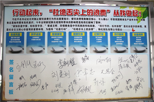 ??? 隨后,班子成員帶頭,全體黨員在“積極行動起來,'杜絕舌尖上的浪費'從我做起!”的簽名留言宣傳展板上紛紛簽上了自己的名字。通過此次活動,進一步在全體黨員干部、職工中增強了勤儉節約、反對浪費的思想意識。大家紛紛表示,從我做起、從點滴做起,做到珍惜糧食、拒絕浪費,自覺作勤儉節約風尚的傳播者、實踐者和示范者,以實際行動為建設節約型社會做出積極貢獻。”