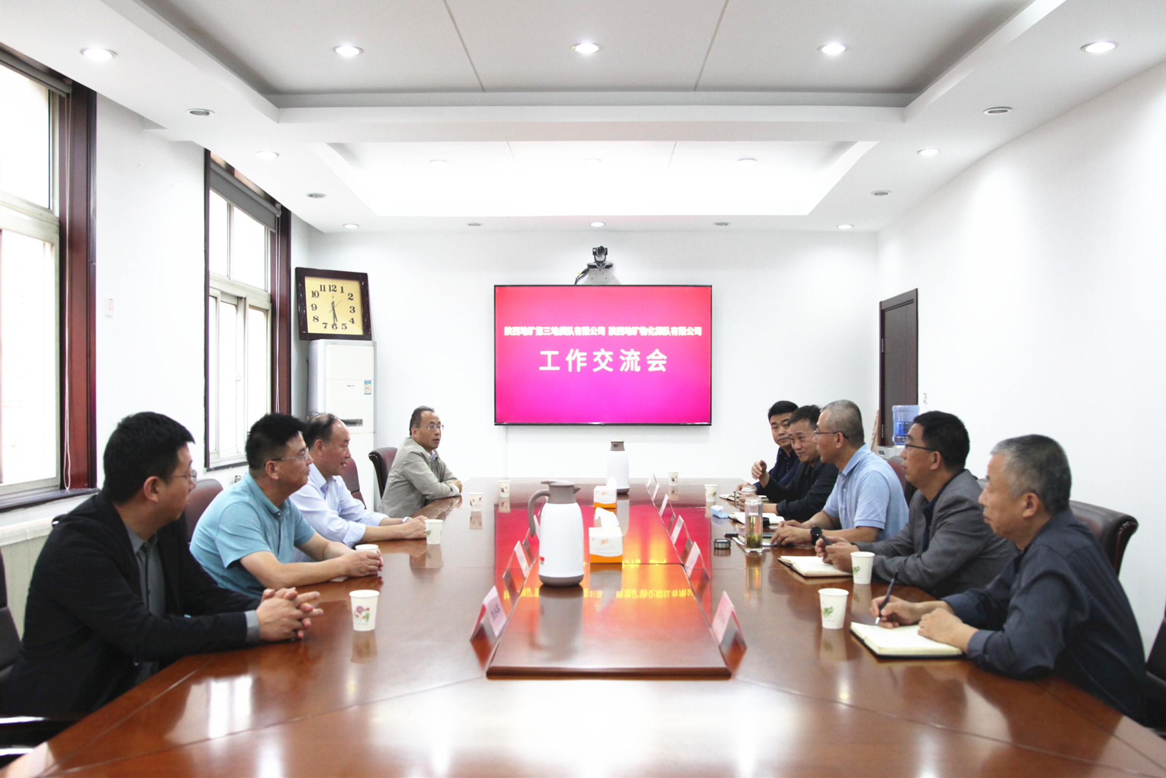 ? ? 9月25日下午,陜西地礦第三地質(zhì)隊(duì)有限公司黨委書記、執(zhí)行董事、總經(jīng)理李煥林,副總經(jīng)理賀永平、李亞成,紀(jì)委書記李軍政,總會計(jì)師、辦公室主任史小軍一行,來物化探隊(duì)有限公司調(diào)研交流工作。公司領(lǐng)導(dǎo)班子成員及相關(guān)部門負(fù)責(zé)人與李煥林一行進(jìn)行了親切座談。