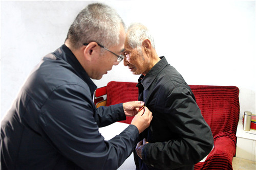 ? ? 許俊賢同志祖籍陜西涇陽(yáng),抗美援朝后轉(zhuǎn)業(yè)到地方工作,1975年調(diào)到物化探隊(duì)工作。23日上午,李新勝來(lái)到老戰(zhàn)士許俊賢家中,鄭重地為年近九旬的老人佩戴紀(jì)念章,并親切交談,關(guān)切詢問(wèn)他的生活起居、健康狀況等情況,代表物化探隊(duì)黨委向許俊賢老人表示親切慰問(wèn),對(duì)許俊賢老戰(zhàn)士為保衛(wèi)祖國(guó)、捍衛(wèi)和平作出的奉獻(xiàn)與犧牲致以崇高敬意。