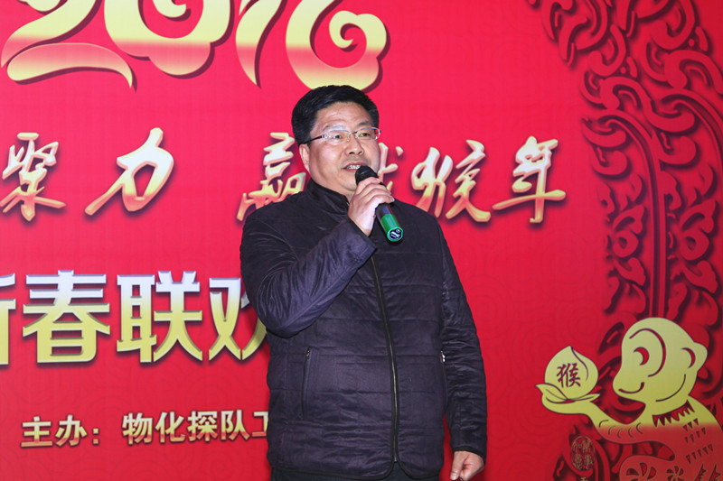 ??? 隊長王新坪致新春賀詞,他說:2015年在總公司的正確領導下,物化探隊創新發展,各項工作取得了顯著的成績。2016年按照總公司的新要求和物化探隊“大地質 大物探 大發展”的經營思路,凝心聚力,攻堅克難, 贏戰2106。全體干部職工一定要奮力搏擊,敢于擔當,攜手同心,用智慧和汗水共譜物化探隊新篇章!王新坪代表物化探隊領導班子,祝全隊職工在猴年來臨之際,身體健康,闔家幸福,生活美滿,事業有成。