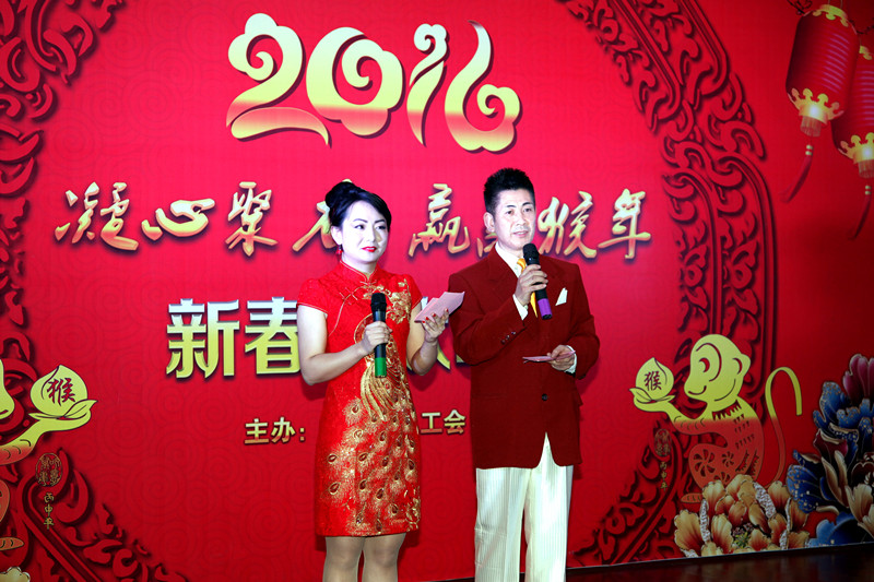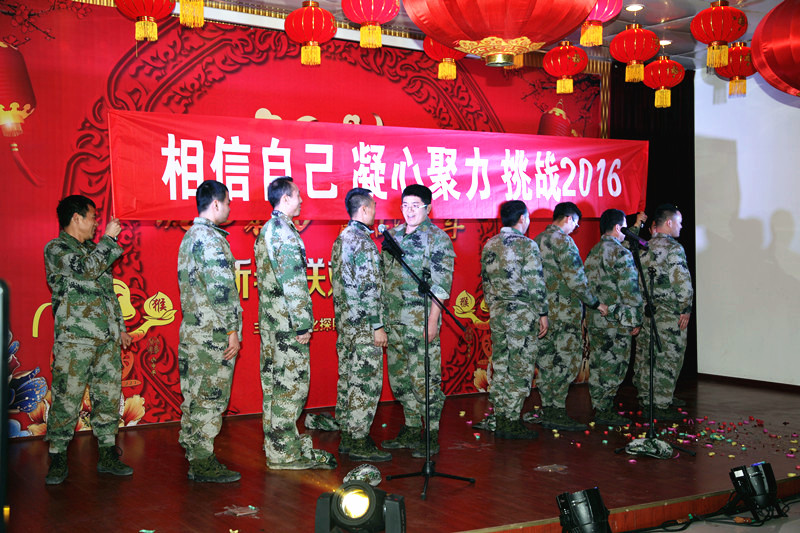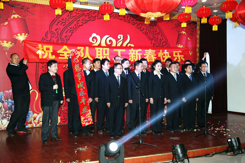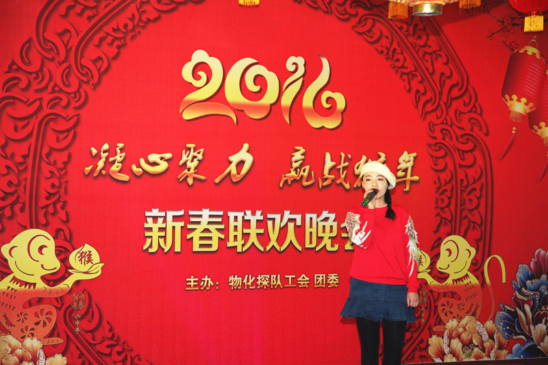 ??? 揮手告別2015年艱苦奮斗的歷程,共同放飛2016年無限的暢想。2月1日晚,物化探隊舉辦了以“凝心聚力 攻堅克難 贏戰2106”為主題的“迎新春”職工聯歡晚會。地礦總公司黨委委員、副總經理、工會主席白林科、地礦總公司工會常務副主席張漢軍出席晚會并講話,隊長王新坪、黨委書記賀志銀及班子其他成員、晚會演出人員、在隊職工及部分家共計100余人歡聚一堂,共迎新春佳節。