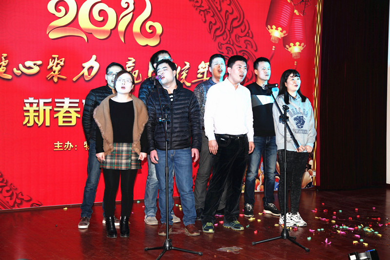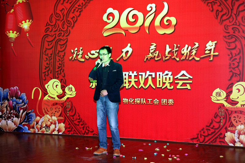 ??? 伴隨著炫動的燈光,激情的音樂,晚會在一支紅紅火火的“開門紅”舞蹈中拉開序幕,來自機關各科室的近十名青年職工,用熱辣動感的舞步瞬間沸騰了晚會現場,昭示著物化探隊天天開門紅,歡快的旋律、熱情的吶喊,讓晚會變成了一個“歡樂的海洋”,接下來的詩朗誦“新春頌”,表演熱情洋溢,共同祝愿物化探事業永遠與春天同行!鏗鏘有力的合唱《勘探隊員之歌》,唱出了物化探隊職工為了地質事業砥礪奮進、無私的奉獻的崇高精神。女聲獨唱《謝謝你讓我這么愛你》溫情浪漫,別出心裁的《相信自己》亮出青春、堅定信心,相信2016我們一定能贏,把晚會推向高潮。白林科為晚會助興演唱了《男人哭吧不是罪》,激情的演唱博得了在場觀眾的陣陣掌聲。《父親的草原母親的河》表達了物化探人連續8年奮戰在內蒙古巴丹吉林沙漠的深厚感情,他們真正是地質一線的《真心英雄》,《我的好兄弟》唱出了物化探隊青年人的地質情、戰友情,《北京頌歌》象征著團結、凝聚著力量。《眾人劃槳開大船》表現了物化探人齊心合力、堅定信心、開拓創新,贏戰2016 ,走向希望,并將演出再次推向高潮,更是點燃了現場干部職工的熱情,激起了一浪高過一浪的喝彩與歡呼,也給廣大干部職工留下了一段難忘的歡樂時光。晚會結束后,白林科、王新坪、賀志銀為獲獎節目進行了現場頒獎。