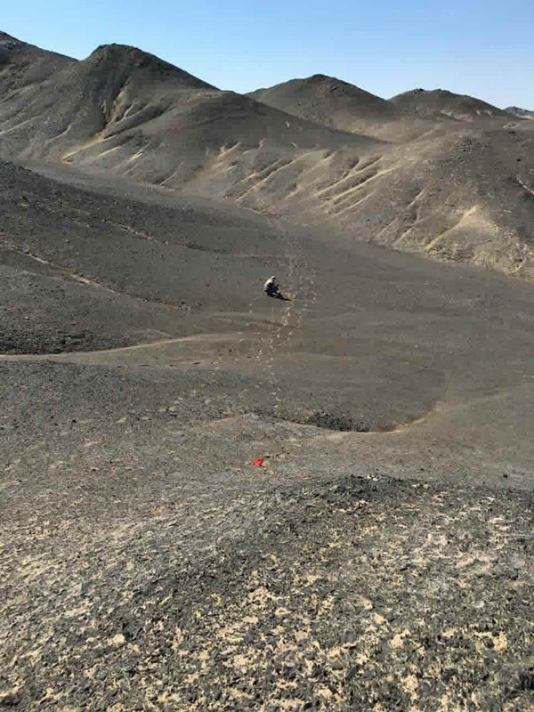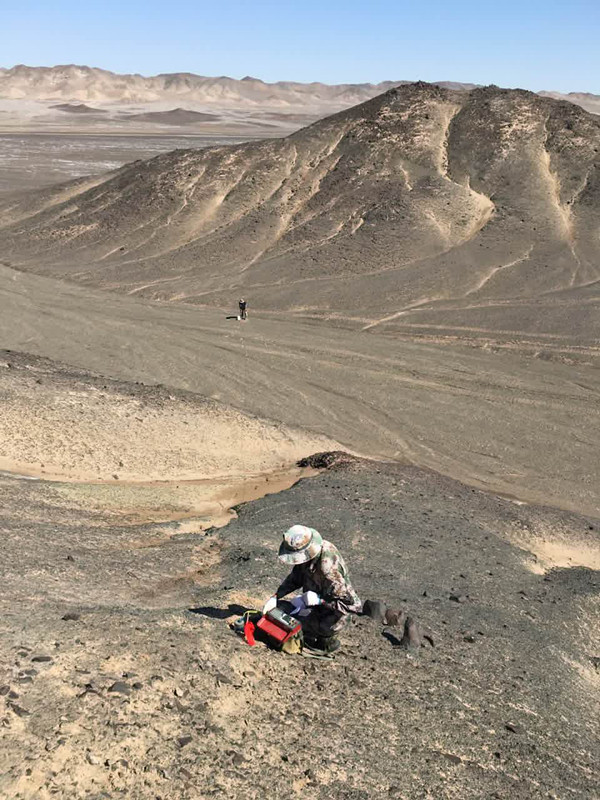 ??? 該項目工作區(qū)位于吐魯番-哈密盆地南緣低山丘陵戈壁荒漠區(qū),干旱貧水區(qū),幾乎無植被覆蓋,七月最熱,最高可達45℃以上,地表溫度六七十度左右,工區(qū)無水無電,生產(chǎn)生活用水都是從工區(qū)外100多公里拉進去,用電全靠發(fā)電機。面對惡劣環(huán)境,項目組積極采取措施保障后勤供給,在合理安排野外高溫作息時間,配備防曬防暑用品,在項目黨小組的帶領下,項目組成員團結(jié)一心,攻堅克難,早晨摸黑起床,到達工區(qū)天微微亮便開始工作,以避開中午高溫時段露天作業(yè)。目前項目實施進展順利,預計8月底完成該項目的野外勘查工作。