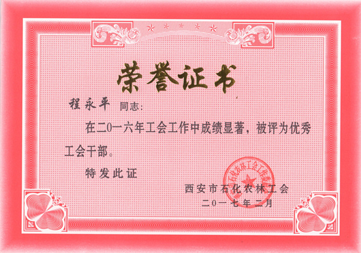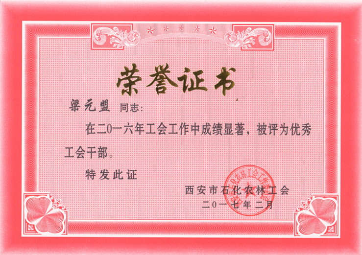 梁元盟、程永平榮獲“優秀工會干部”稱號