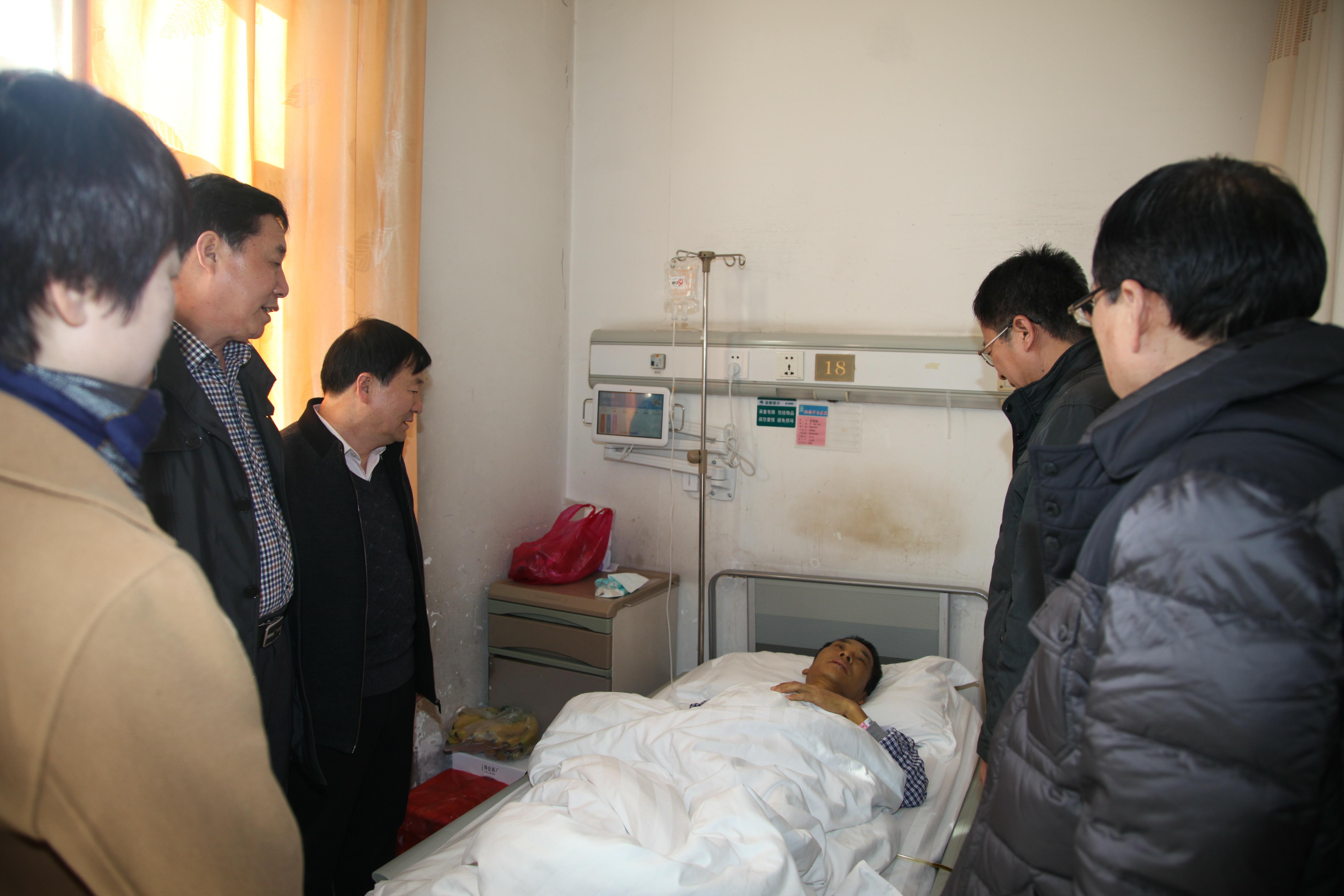 ??? 2月11日,集團公司黨委副書記安增會和行政工作部主任馮鈺、離退休管理所主任李崇勇一行三人,在隊黨委書記、執行董事、總經理王新坪等陪同下,到西京醫院看望慰問了物化探隊住院困難職工程領岐。